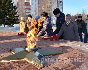 На стеле Победы был зажжен Огонь памяти. Юнармейцы несли рядом с ним почетную вахту. А жители и школьники возложили к памятнику цветы.